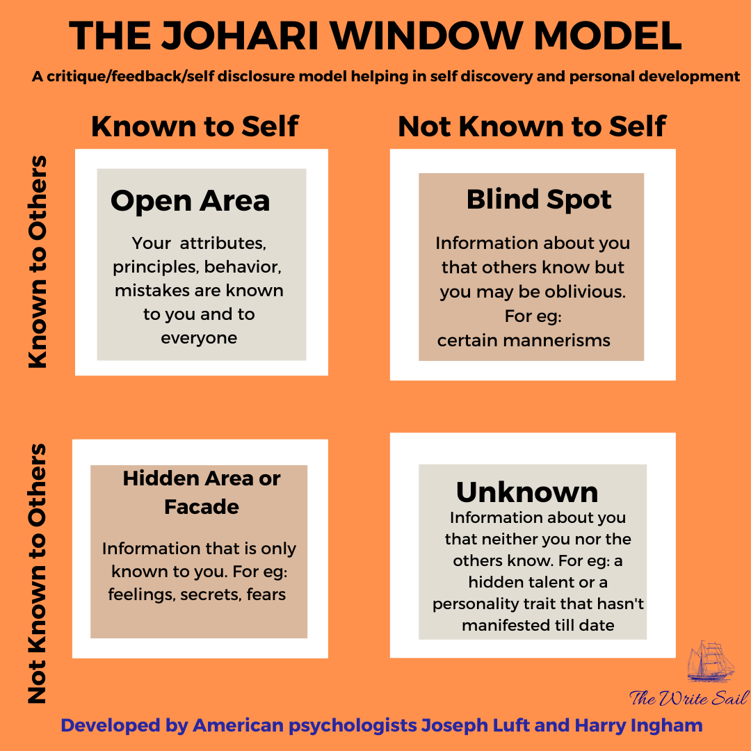 Johari Window is an approach that aids in understanding relationships, whether it be with oneself or with others. Designed by psychologists Joseph Luft and Harrington Ingham, it is a heuristic exercise that allows for a deep dive into how much information about a person is HIDDEN and a recognition of what all about that person is in the OPEN.